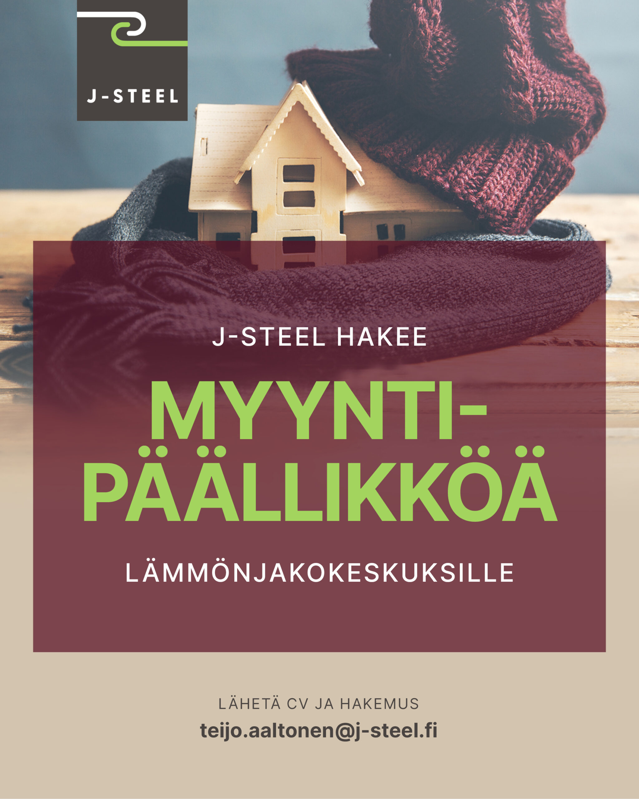 Haemme J-Steel Oy:lle myyntipäällikköä lämmönjakokeskusten myyntiin. Tässä roolissa vastaat omista asiakkaistasi ja viet myyntityön läpi alusta loppuun, tarpeen kartoituksesta tarjoukseen ja jälkimarkkinointiin.